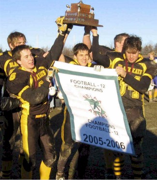 Daily Gleaner | Mike Power As published on page C3 on November 15, 2005 McIntyre provided plenty of inspiration for Black Kats in their title quest Mike Power McIntyre was featured for his work in local minor football circles as a prelude to Saturday's provincial high school football final. He was quick to point out how proud he was of the Capital Area Minor Football Association's contribution to a game featuring minor alumni on both the Oromocto High School and Fredericton High School teams. But as for his secret source of pride, and no doubt concern, he had to keep that quiet. Quiet, that is, until a minute remained in the final and the Black Kats had all but lifted the Ed Skiffington Trophy, emblematic of the provincial high school football championship, after beating the Blues 26-9. That's when McIntyre came over to me to tell me his secret. "My son, Bobby, played this whole game on a broken leg," he said. I was astounded, and displaying my well-honed reporter instincts, I replied with a sharp insightful question. "Huh?" I said. "A what? Did you say a leg? Really?" Well, Edward R. Murrow wouldn't have been proud but who could blame me? After all, Bobby McIntyre had just been one of the stars of the game, two interceptions and a bunch of other stuff. But I did find out what Terry McIntyre was talking about once I picked my jaw up off the ground. It seems Bobby had been injured against Leo Hayes in the final game of the regular season. He was pulled down from the side and the torque of the tackle snapped his fibula. Ouch! I wanted to know if McIntyre, the son, had taken some kind of freezing agent, morphine or some such thing. No, his father told me, just Ibuprofen. "He's one tough little guy," said Terry McIntyre beaming with pride. Yes he is. I catch a cold and I'm home for three days. "I didn't play last week," Bobby McIntyre said after the game. "And I couldn't stand watching from the sidelines anymore." So he used the emotion, the adrenaline and yes the Ibuprofen, sucked it up and went out to play the final game of his high school career because he will graduate in the spring of next year. "This is the game of my life," McIntyre said fighting back tears of joy no doubt in advance of some tears of pain that would follow when the adrenaline left his system some hours in the future. "I played the game of my life. I'll probably never play like that again. It was the most beautiful game I've ever played and I'm just ecstatic." The only time it was obvious was after his second interception of the game around the Oromocto 40-yard line. He went down and stayed down for a while. When he got up, he limped a bit, but was soon back in the game. "I landed right on the fracture," he said, and again I add, OUCH! "I hurt for five seconds but when I knew we had the ball, the pain went away."