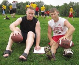 | Capital Area DQ Gladiators’ player-coaches Jamie Edwards, left, and Jeff Taylor don’t have a lot in common — with one notable exception: their love of the game of football. They’ve helped build the Gladiators into a contender in the Maritime Football League. The Gladiators host the Halifax Shockers in a Maritime Bowl AAA semifinal Saturday at 6 p.m. at Chapman Field. |