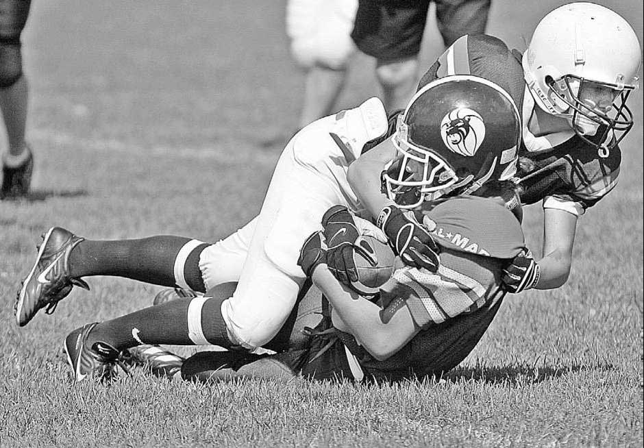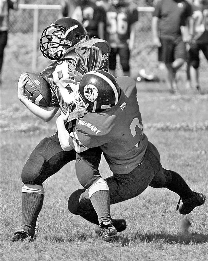 tackle on Kim Justason (8), of the Saint John Buccaneers during