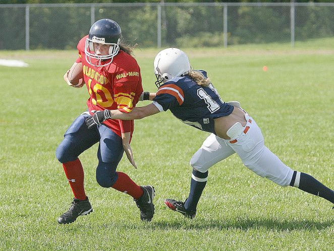 Alex Black is on a mission in the Maritime Women's Football League, and with one more win she will have accomplished her goal. Well, truthfully, she has already pretty much done what she set out to do but a win in tomorrow's Maritime final against the Halifax Xplosion would make it all perfect. Black, the 15-year old quarterback of the Capital Area Curves Lady Gladiators, a senior level team, is fuelled by memories of last year in her quest to be part of a championship team in the league this summer. "Last year I wanted to play but couldn't," Black recalled from her home in Harvey. "I actually played two games before they said I wasn't eligible to play. I was too young, and the two games I played the team won. "I was having a really good time and didn't want to have to leave the team but there wasn't anything anybody could do about it. I just decided I would come back this year and really try to do well." And if she was too young a year ago then she must have matured a lot over the winter. Black has been a major part of the Gladiators - on offence at quarterback and also doing the job at safety on defence. Black played a big part in the Gladiators 6-1 record, including last week's 22-6 semifinal win over Saint John. Now the Gladiators are a win away from the crown. "It's a big thing for all of us, but for me personally it would be a nice way to come all the way back from the disappointment of last year," Black said. "I want this to end on a high note." Tomorrow's game, a 4 p.m. kick-off at Leo Hayes Field, is all just part of a busy week, and the weekend is part of a busy life, for Black who weaves a multi-sport schedule around attending school at Harvey High. "I have to go away to P.E.I. for soccer and I'll get back just in time for the (football) game," Black said Besides soccer - at the provincial competitive level, by the way - and football, Black also plays badminton, volleyball and basketball while running cross country and track and field. And don't ask which sport is her favourite because she isn't sure how to reply. "I like them all really," she said. "Whichever one I'm playing at the time I guess is my favourite." Football has been part of that busy life for nine years, most recently as part of the Gladiators but also the bantam lady Black Kats at FHS where she is allowed to play because Harvey High School doesn't have women's football. "I read about it in the paper years ago," Black said of how she picked up the pigskin game. "Then I saw that girls could play tackle and I really wanted to give it a try. I've been with it ever since playing minor football and working up to where I am now." As for what it is she likes about the game it comes down to a little bit of everything. "Mostly I like the physical part of it," she said. "But it's also the pressure, the quickness, having to make decisions, having to think fast and be ready." As for her current success, she attributes that to two major reasons. "First of all I've had great coaching all the way," Black said. "Every year my coaches have been supportive and helped me handle whatever pressure comes along. They have been patient teaching me what I need to get better." And then there's her offensive line when she's quarterbacking. "They really do take good care of me," she said. "Some of them are quite a bit older than me and they make sure I'm OK. They really do protect me. They talk to me and keep my focused, and they don't let me get down about stuff. I couldn't do a thing without them." As for the big game itself Black admitted to being a little surprised when she heard it would be the Xplosion that made it through to the final, beating Moncton 17-15. "I thought we would play Moncton," Black said. "But Halifax is a new team and when we went down to play them early in the year they talked a lot about not having had much practice at that point and how they would be improving, so I suppose that's what happened with them." Halifax was 2-4 in the regular season, the Gladiators won both of their head-to-head meetings: 18-0 in Halifax in week two and 20-6 at home on the final week of the season. Week 8: July 30