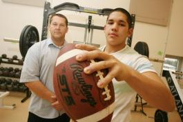 Appeared on page B1 Two St. Mary's Leo Hayes Lions are among the top 100 high school football players in Canada, according to an Alberta scouting service. Grade 12 defensive end Brady Paul and offensive lineman Paul Sibley are both on the list, along with receiver Mitch McCoy of the Oromocto High School Blues and running back Marc McDougall of the Moncton High Purple Knights. Ridley Scouting director Kent Ridley said linebacker Jake DeWolfe of the New Brunswick 12-man provincial champion Fredericton High School Black Kats is hovering around the top 100 and may be included on the second issue of the list, to be released New Year's Day. Ridley said the creation "of what we believe to be the first public top player list was two-fold...first, to give a truly national list of the best players in the country. The secondary reason was simply to give more attention to the high school game." Players are listed alphabetically, rather than ranked numerically. Ridley estimates there are 6,000 players in Grade 12 or their final year of CEGEP programs in Quebec, "so taking that down to a list of 100 players is a major task," he said. "The players are rated and graded in the lists we prepare for the universities, but our public list is a generalization of the top players," he said in a email. He said compiling the list involved gathering information "from people in the area, coaches and reporters. Stories on players, schools and especially season preview reports were very helpful in identifying the top players to then keep tabs on through the season. When we could, we watched game film supplied by schools and at the very least, went through highlight reels of hundreds of players." Lions' coach Brent True believes Ridley got it right. Both Sibley, 17, and Paul, 18, were among 160 players who attended a Maritime scouting combine at Saint Mary's University in Halifax last February where players are tested on the 40-yard dash, vertical jump, bench press and 1-on 1 drills. Both had good camps - Sibley, a Grade 11 student at the time, finishing second at the combine in bench press to a Grade 12 student from Halifax and were strong in 1-on-1 drills. Both also excelled at the combine True ran as part of the Lions' preseason training camp. "It's great for our program and great for both those kids," said True. "They're both four-year starters, and there's a big work ethic on both of them. They're gym rats. There's no other sports for them. They're concentrating on football. Both have good grades and they're being recruited heavily by a lot of schools." Paul, six-foot-one and 210 pounds, finished the season with 51 tackles, nine quarterback sacks, two forced fumbles and a fumble recovery, according to stats posted on the Leo Hayes football website as the Lions completed a 2-5 season in the Western Conference. Sibley, an offensive lineman, played three games on the defensive line, all against FHS this past season. He had six tackles and blocked a punt. Sibley stands six feet tall and weighs 250 pounds. What True likes, among other things, is his dependability. "Paul is consistent," he said. "Strength-wise, he could go to most (university) programs in Canada and be in the top 10 per cent in strength. He's high 20s (for repetitions) at 225 pounds. He's just as strong with his legs. Nobody could beat Paul one-on-one last year." True believes Sibley "is probably the strongest offensive or defensive lineman in the Maritimes" next year. He believes both players could be starters in CIS programs next season. "Paul Sibley would be one of the strongest offensive linemen, right now, at just about any university in Canada," True said. "I don't think he realizes just how good he could be." Sibley said he "was pretty pumped up" about seeing his name on the list of the top 100 players in the country. "I actually was surprised," he said. "I knew I had a good year, but I didn't know I was that good," he said. "I don't like being cocky and I don't want to sound too cocky, but I feel like I could (play in the CIS) right now." That's a long way from his introduction to the game in Grade 9. He said he was "a terrible football player" then. "I was just kind of a big body. After the season, I said 'This is what I want to do and there's no turning back.' I stepped it up and improved a lot in Grade 10. Every year I improved so much." His last two years were outstanding, topped off by his best this past season. "I wanted to go out with a bang and play as hard as I could," he said. "I felt this was my best year." Paul has been working at the Elite Experience training facility on Main Street since shortly after the facility opened in July. He's a co-op student there for 15 hours per week. "Basically, he does a power-lifting routine, and it's designed to improve his performance on the field," said Thom Lamb, who calls himself a "strength and lifestyle coach" for the Fredericton native. "It's designed to improve his conditioning, improve his strength. He's a defensive player, so he's got to be able to move players around who are 100 pounds bigger than him. He's doing that pretty effectively." Paul noticed it this season. "My endurance was amazing," Paul said. "My footwork was very good. The season didn't end the way we wanted it to, so I don't think it was a great season." But he said personally, "it was amazing...my stance and the first few steps out of my stance, I was a lot quicker." "He works on explosive training," said True. "Both of them trained with Jake Thomas in the summer. I'd come in and here they were out back in 35-degree weather, running sprints or working on the sled or pass rush technique." "If you're going to be an athlete, you need someone who is holding you accountable to acting like an athlete 24/7," said Lamb. "That's the big difference. It's not just the three hours a week you spend with someone, it's the followup on what you're doing the other hours of the day." He said when he went to Leo Hayes to demonstrate some tra