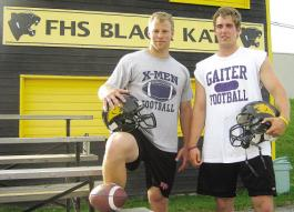 | Friendly foes: David Skillen, left, and Justin Conn, longtime friends and former Fredericton High School Black Kats football teammates, will be going head to head in university football Oct. 17. That’s when Conn’s Bishop’s Gaiters travel to Antigonish, N.S., to take on Skillen’s St. Francis Xavier X-Men in interlocking action. |