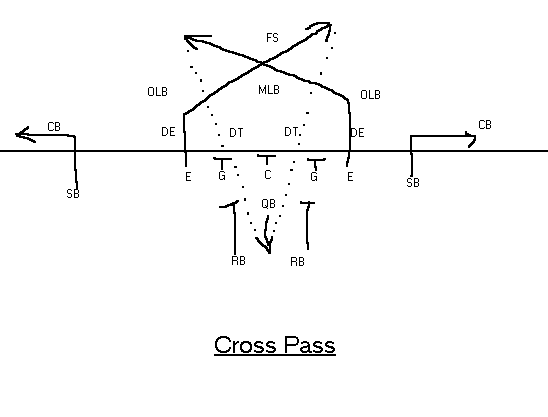 QB takes a three step-drop and tries to hit one of his E’s who have crossed in an attempt to “fool” the defence. The SB’s will do out patterns to draw the CB outside.