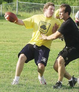 two-point safety for the Steelers. A.J. Durling, David Carr, Ethan McClellan and Erik Watson caught touchdown passes for the Spartans, who received two-point converts from David Dolan and McClellan, who had two on the night. Responding for St. Mary's were Allison Brooks with two touchdown tosses, one each to Nathan Paul and Bobby McIntyre. Brooks added a kicking convert for one point to round out the scoring. League play resumes Thursday, July 30 at 6:15 p.m. on the Leo Hayes High School back field. Admission is free. |